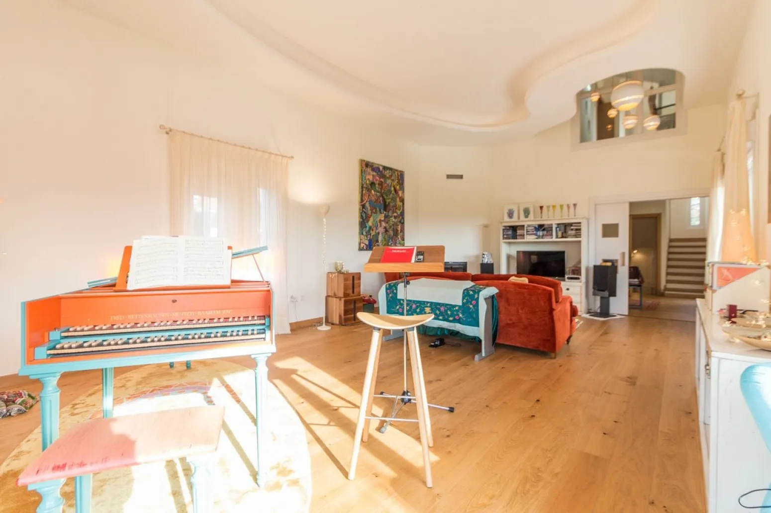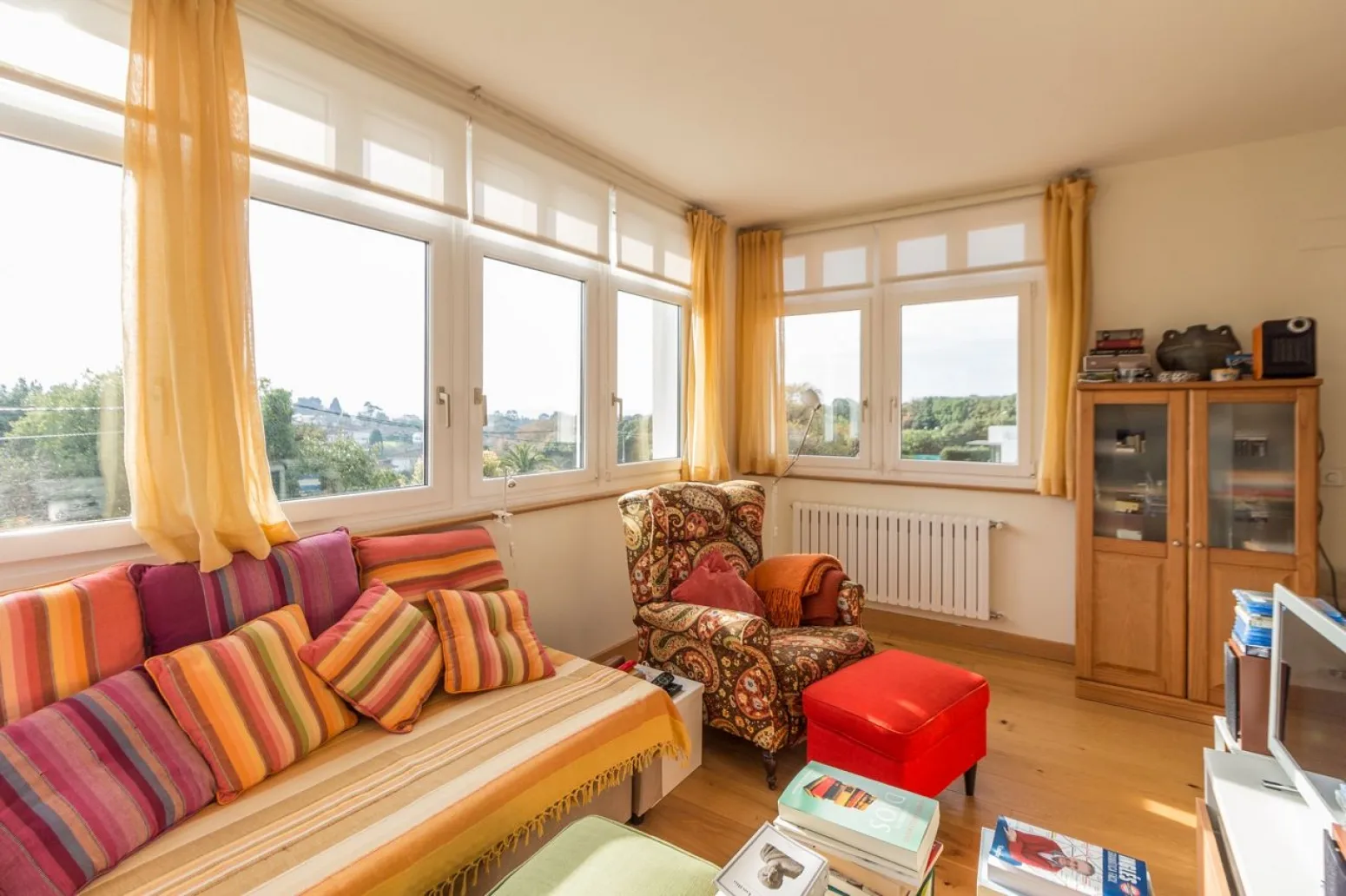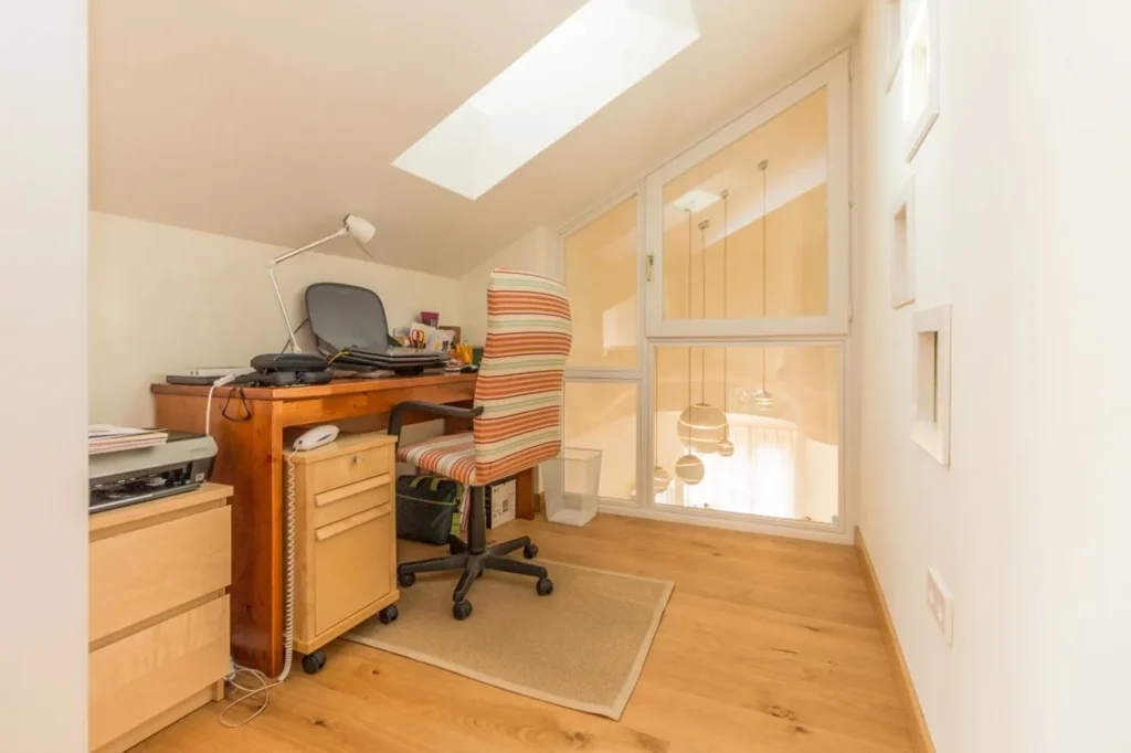 En la planta superior encontramos una estancia cuyo amplio ventanal se abre a un horizonte infinito. Luminosidad y vistas despejadas para disfrutar de un espacio personal en el que trabajar y relajarse.
