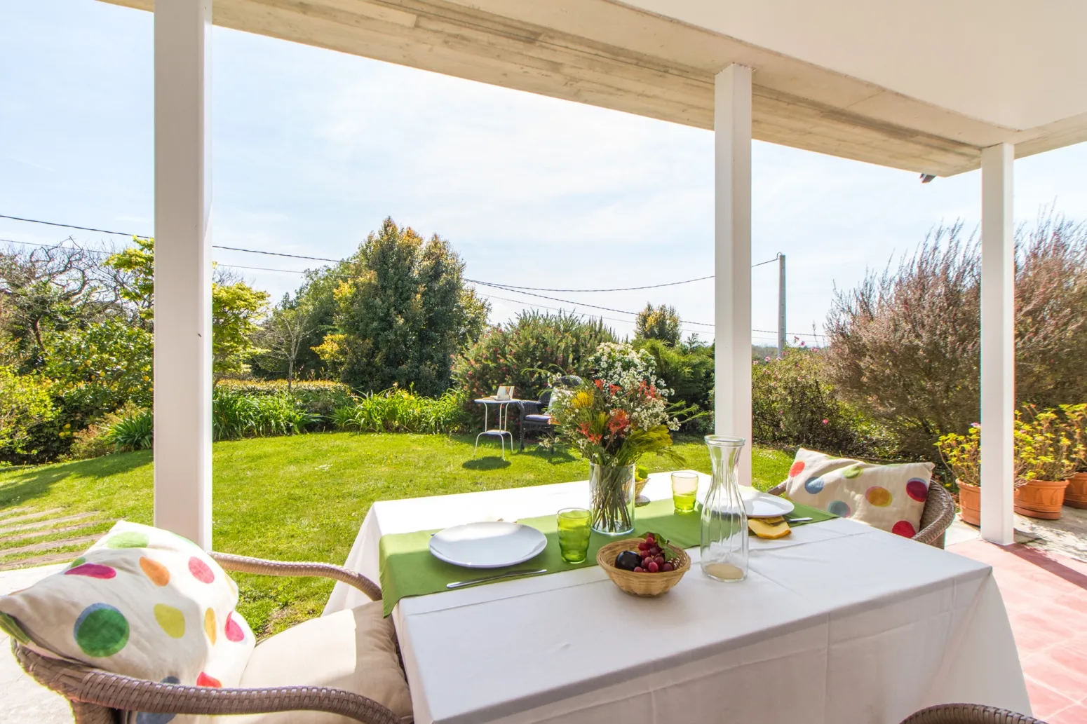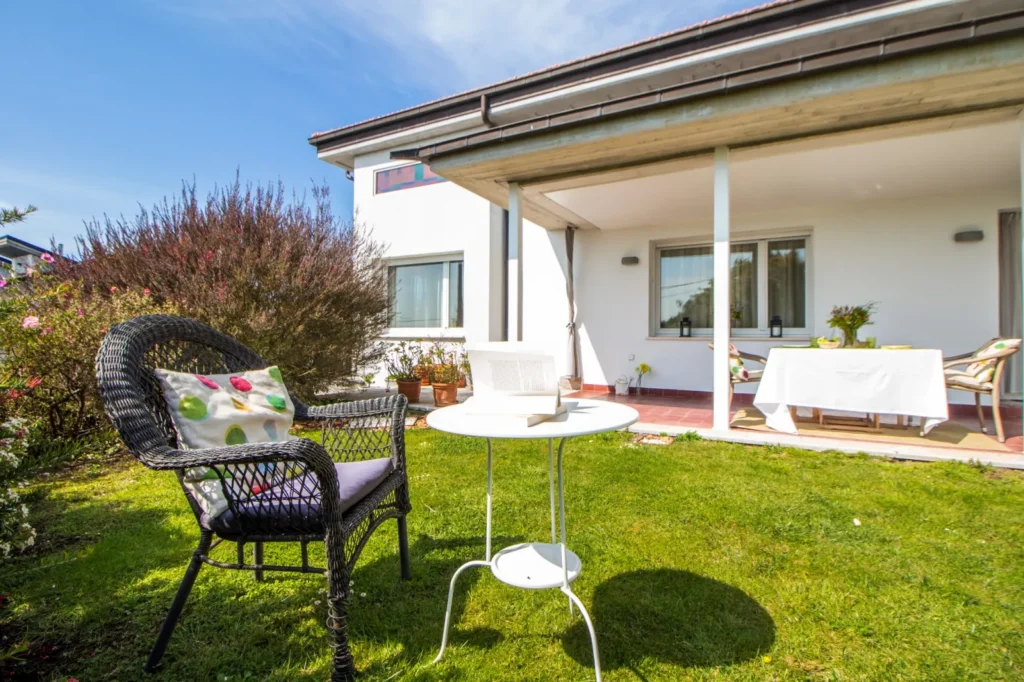 El gran porche de entrada a la vivienda se convertirá en tu mejor aliado para disfrutar del espacio exterior todo el año, comidas familiares al sol en invierno y reuniones al resguardo de las noches estivales, todo ello con la vista de un bonito jardín rústico.