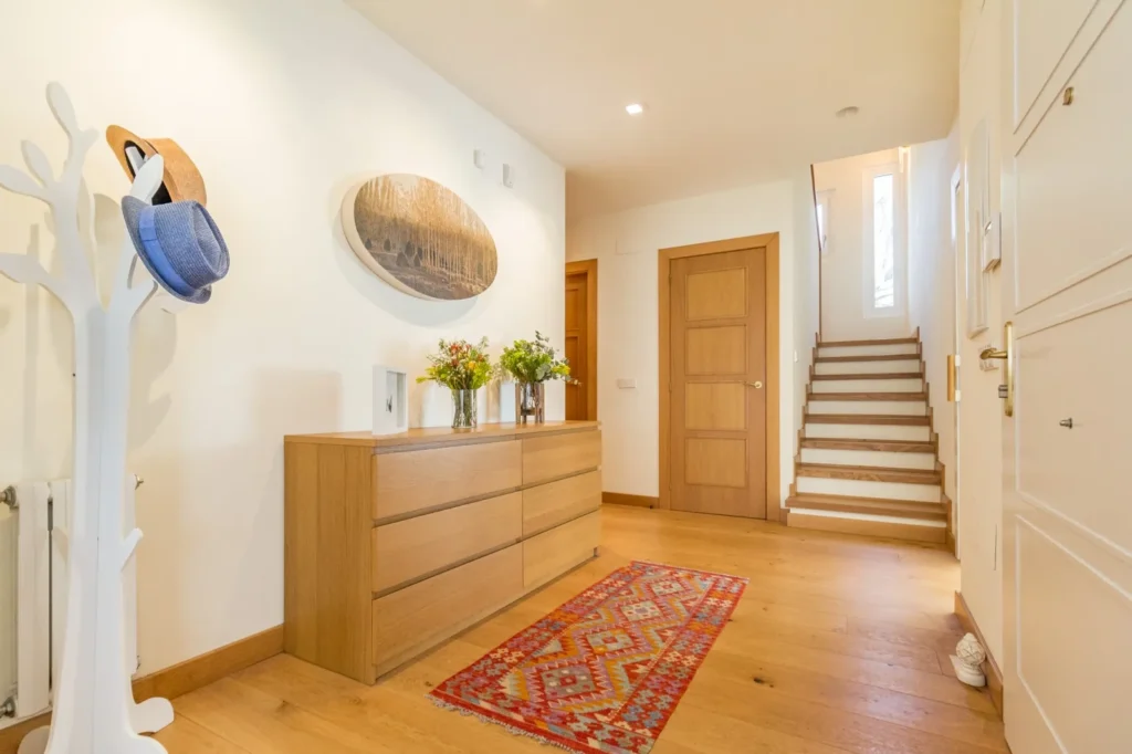 Una limpia arquitectura geométrica y amplios ventanales aportan una gran iluminación a los espacios interiores acogedores y elegantes gracias a los acabados naturales en suelos y carpinterías.La planta baja cuenta con 3 dormitorios, 4 baños, un amplio salón con chimenea y salida a la terraza/piscina y una coqueta cocina-comedor. Todo la vida en una planta hace que el día a día sea cómodo y familiar.